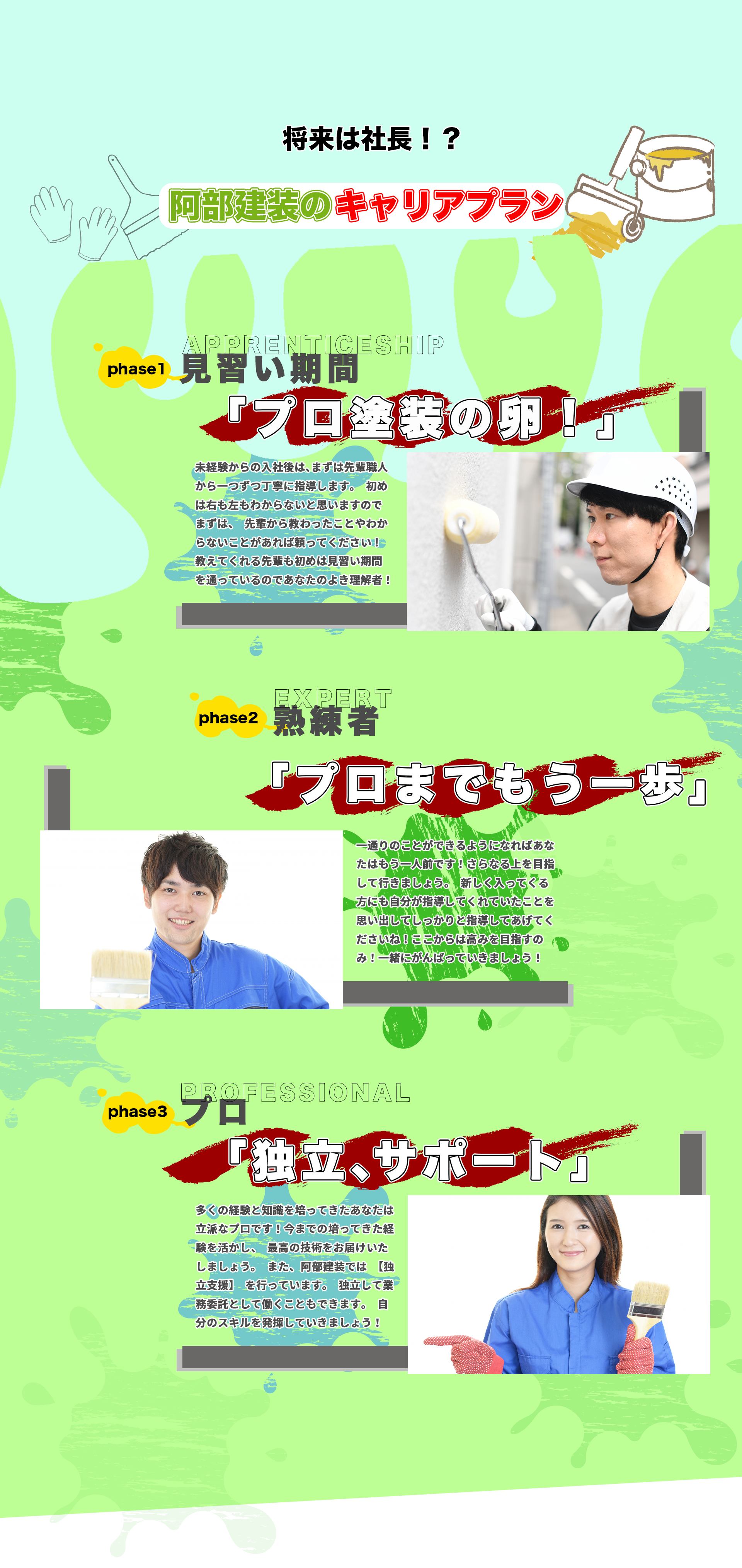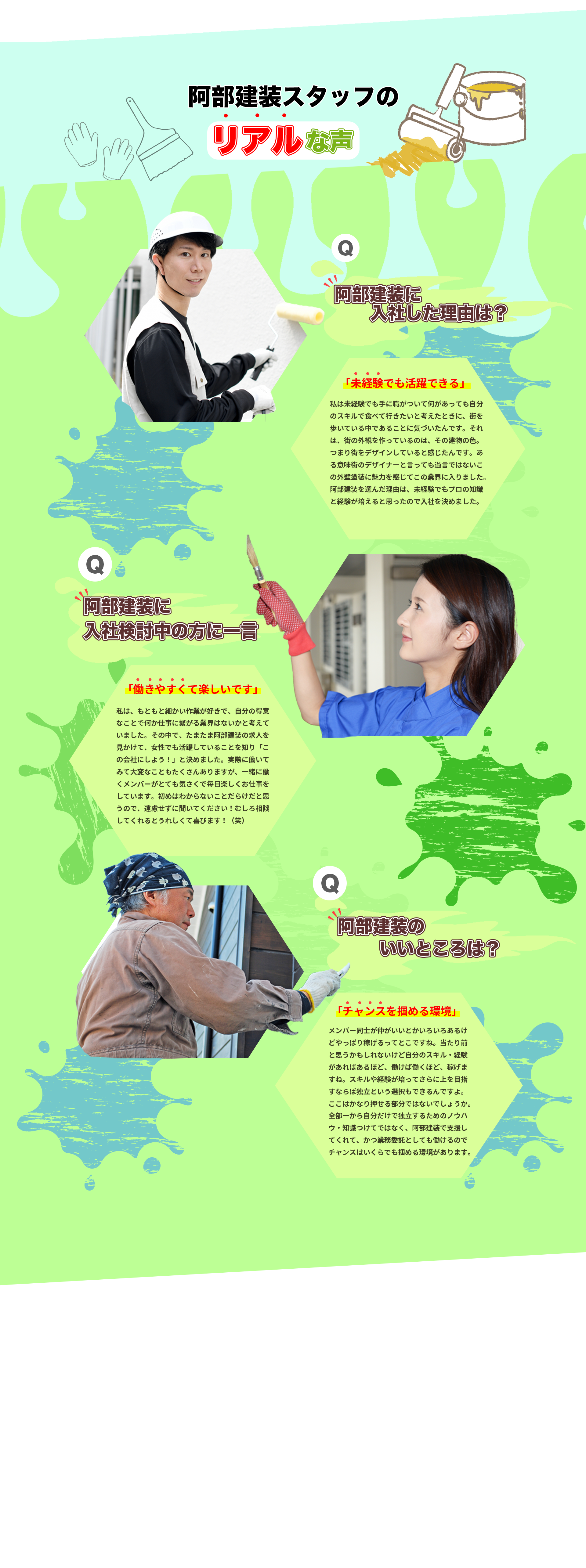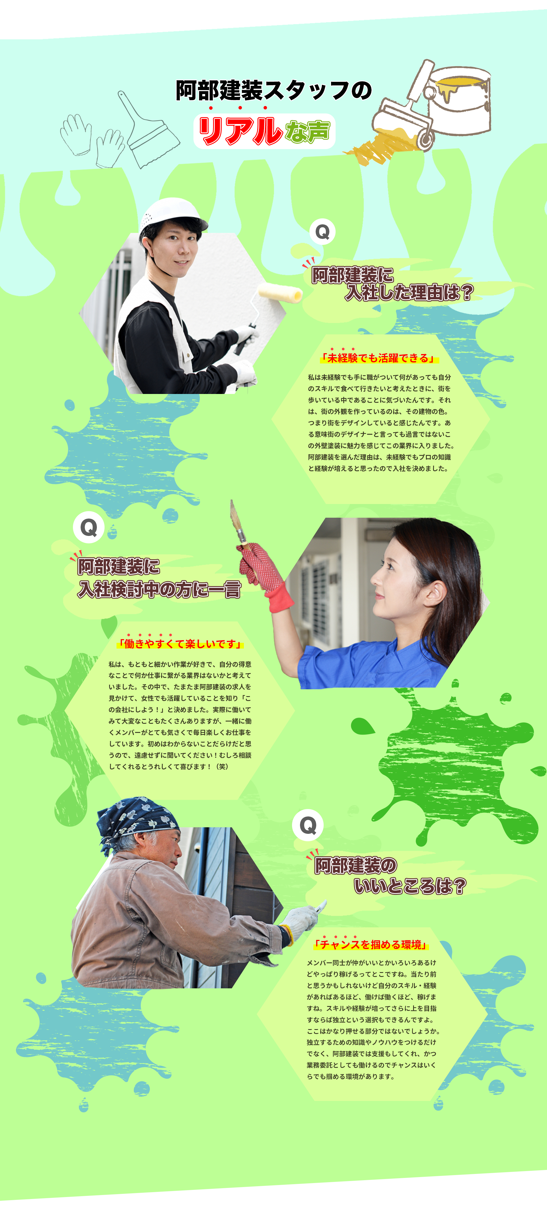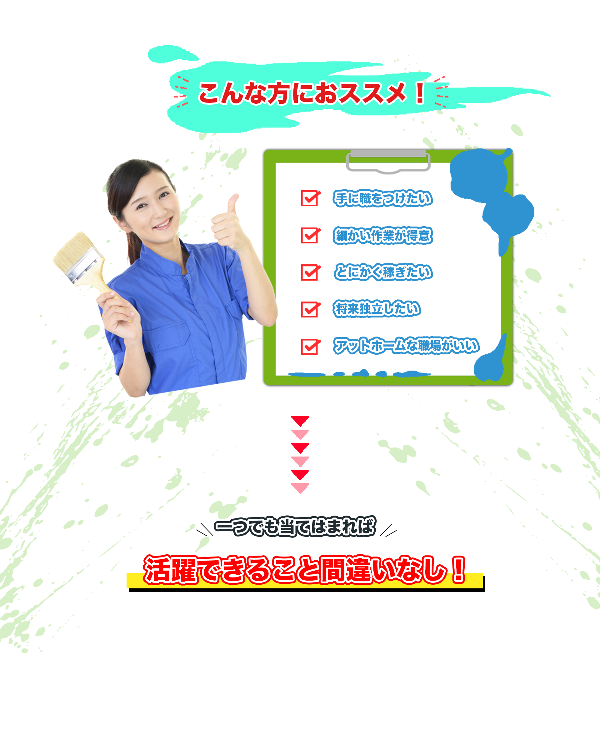 | 仕事内容 | 一般住宅、マンション、アパート、テナントなどの 内外装仕上げ、リノベーション |